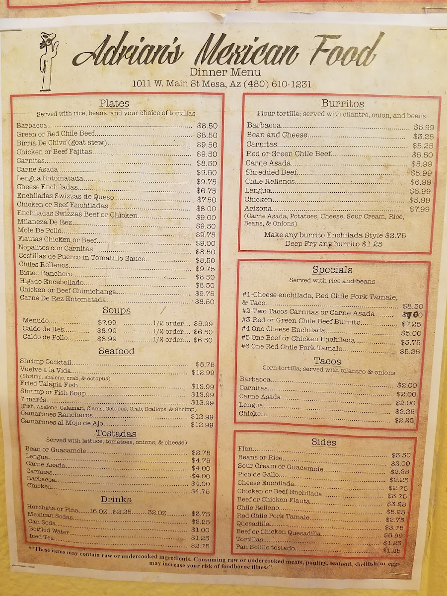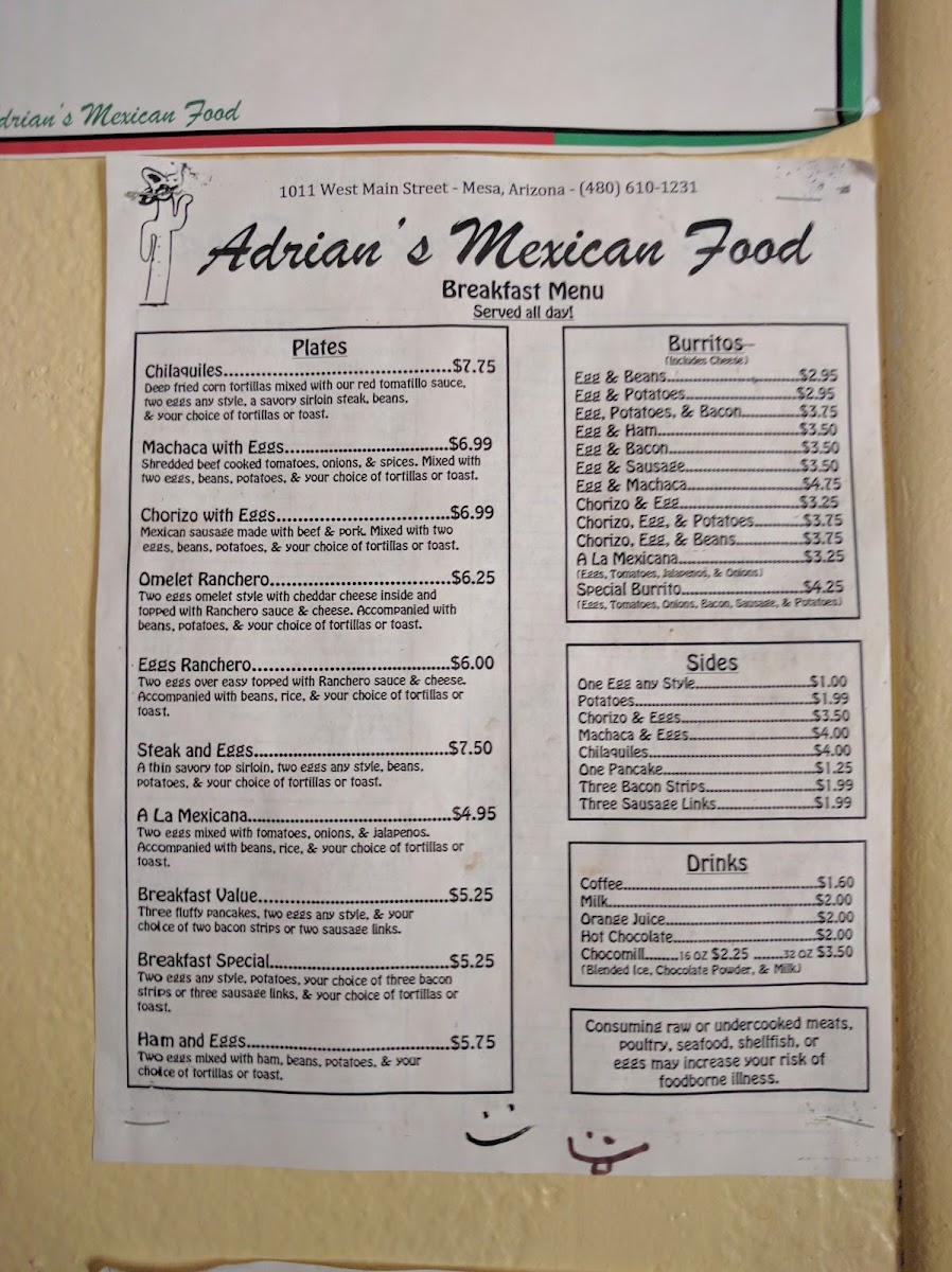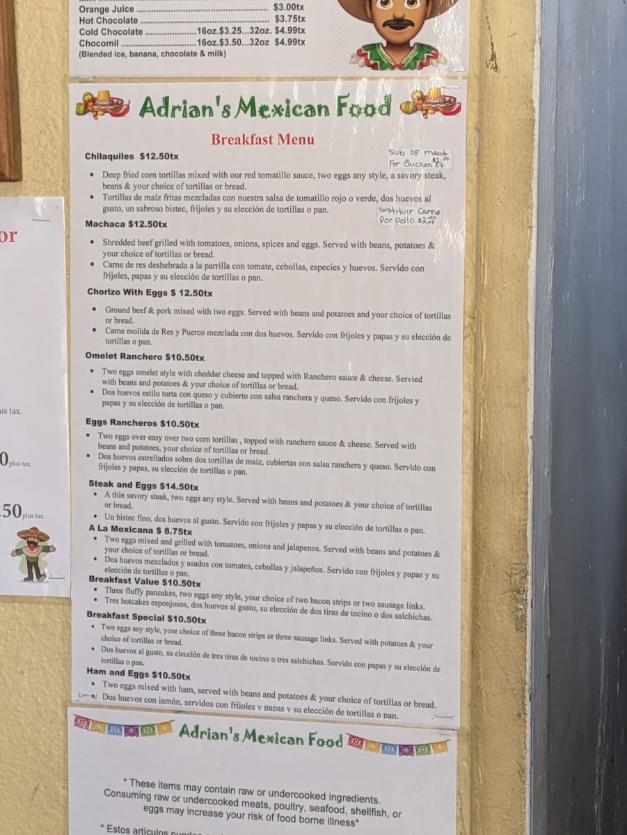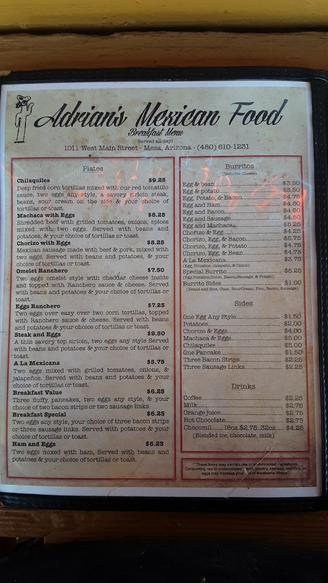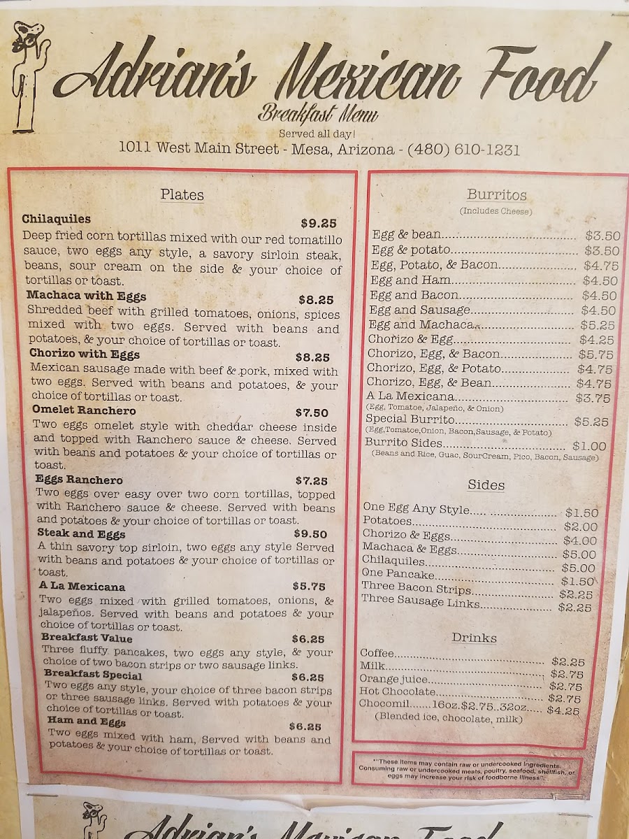 Adrian’s #2 offers a straightforward and inviting menu that reflects the heart of classic Mexican dining. The selection leans toward comforting, well-prepared dishes that work perfectly for breakfast, lunch, or a casual dinner. Whether you’re stopping in early for a hearty breakfast burrito or settling down for a flavorful Mexican dinner, the menu feels approachable and familiar.